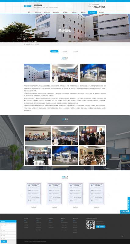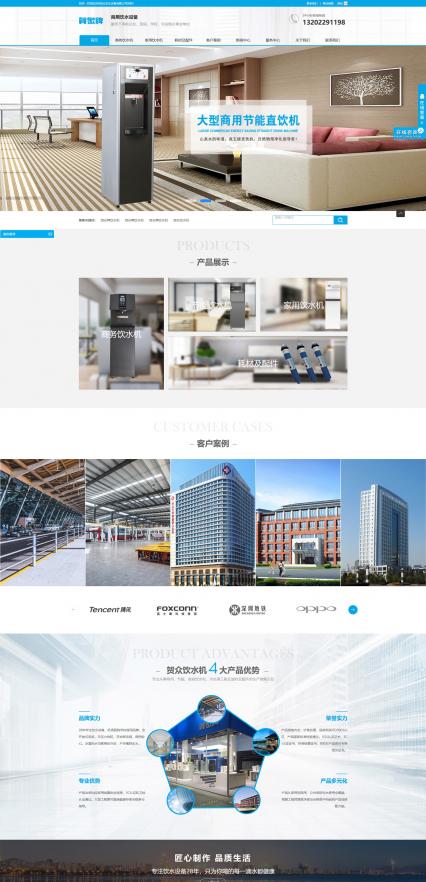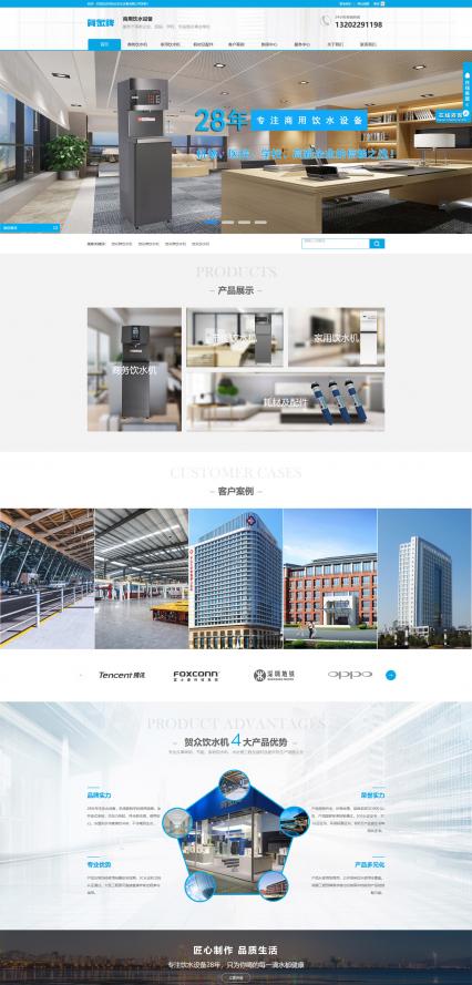 结合贺正饮水设备的logo元素及饮水机行业的属性,将网站主色调定位蓝色,将白色作为辅助色,使网站整体保持着清新明了的浏览风格
