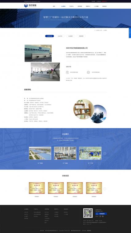 结合恒芯智能装备企业VI元素及智能装备行业的科技属性,将网站设计主题颜色定位蓝色。使网站整体保持着简洁明了的科技风格。