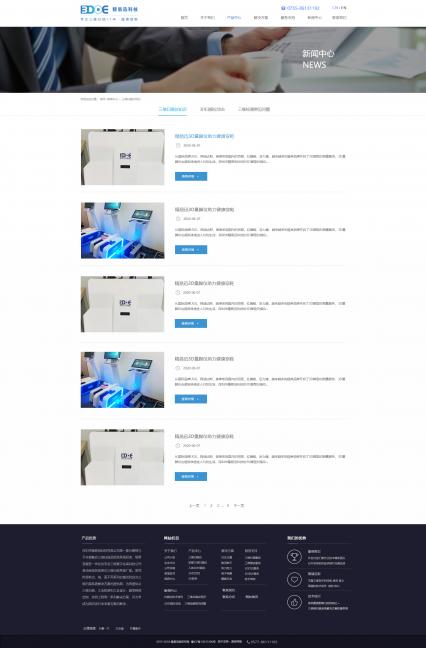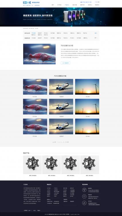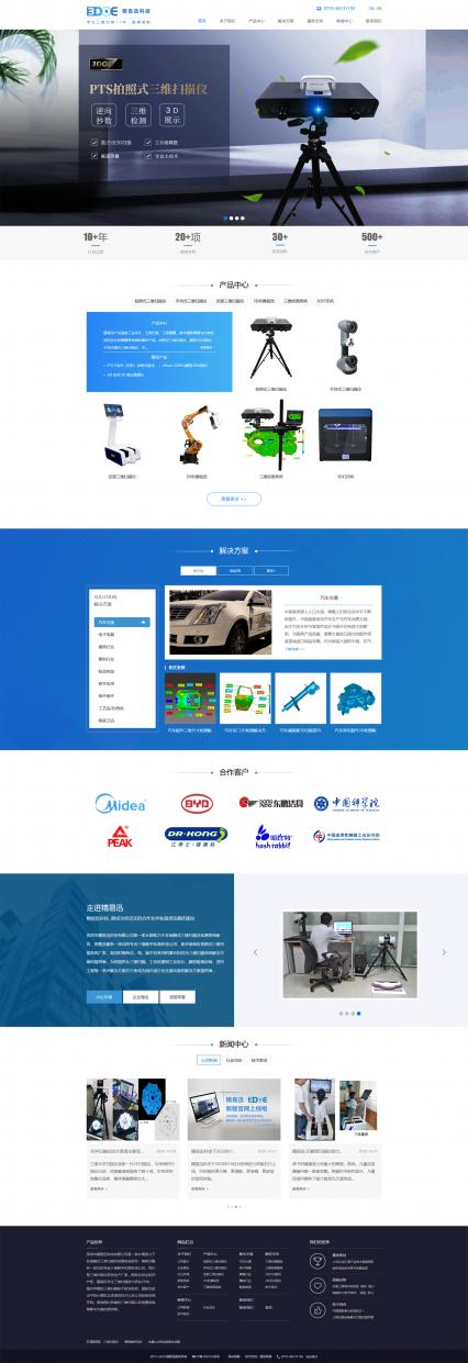 结合精易迅的logo元素及三维检测行业的科技属性,将网站主色调定位蓝色,以黑白灰作为辅助色,使网站整体保持着简洁明了的科技理念