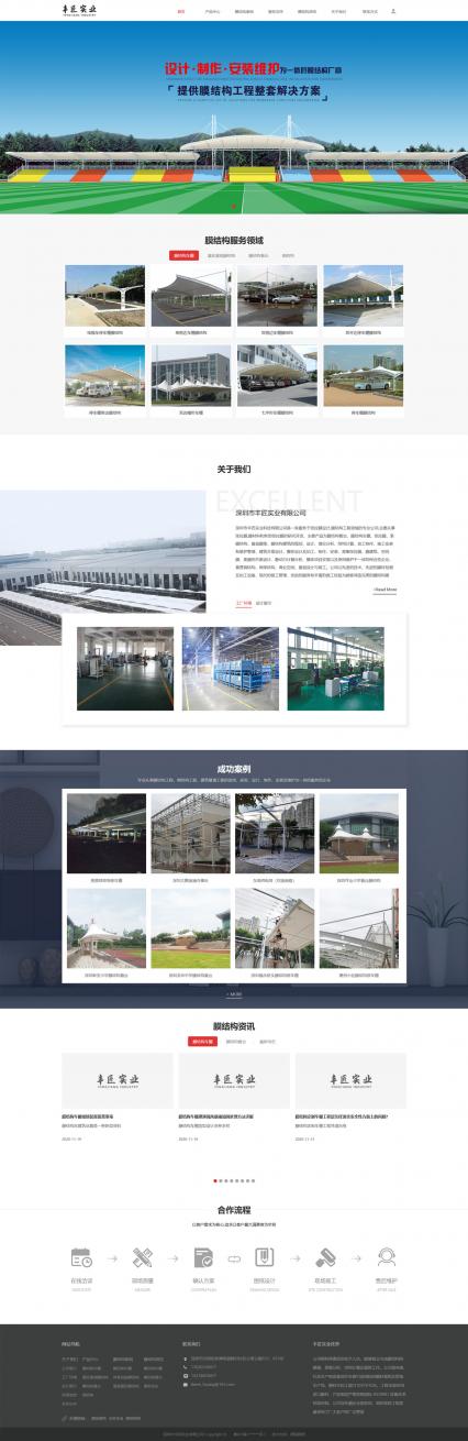 结合丰匠实业企业元素和膜结构行业属性,将网站设计色调定位为蓝色,整体网站风格保持着科技环保的绿色属性。