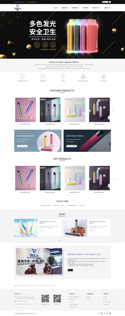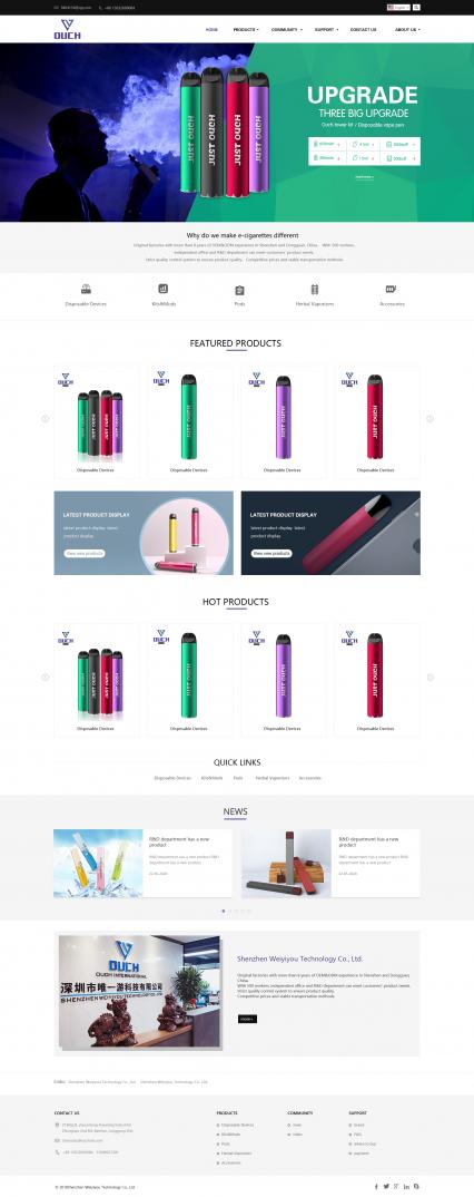 结合唯一游的logo元素及电子烟的行业属性,将网站设计主色调定位蓝色,将白灰色作为辅助色,网站设计整体风格保持着简约大气的风格