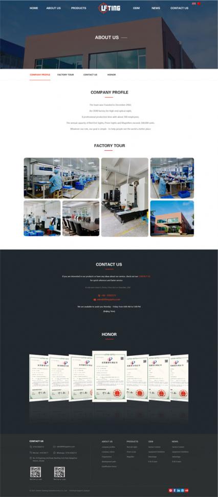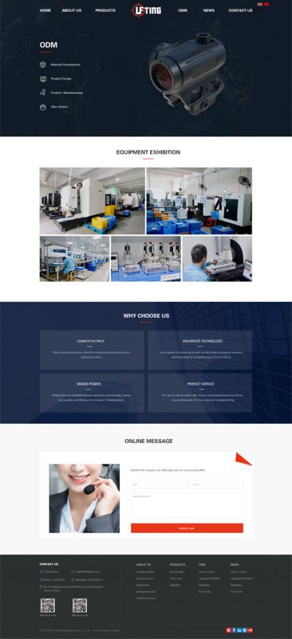 结合珠海霖平高端光学网站设计的行业属性,整站采用了红黑色系作为主题色,网站整体呈现风格简约厚重有质感,给人一种高级感不会显得单调,符合高端光学网站建设的特性