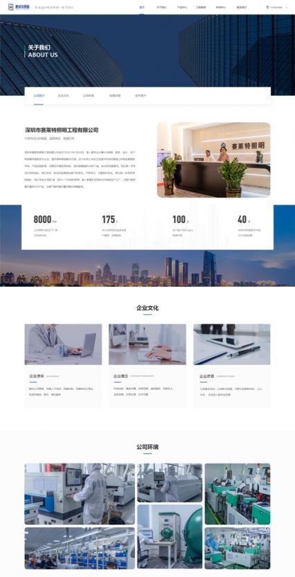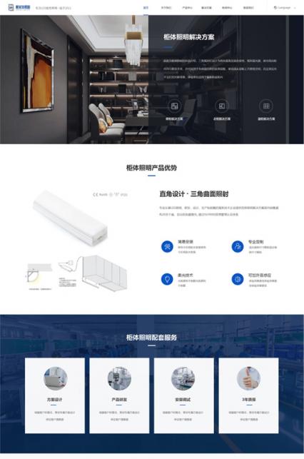 结合赛莱特照明的产品属性和品牌元素,围绕LED照明网站设计风格,整站采用科技蓝为主色调,环保绿为辅助色,网站整体风格简约大气不会显得杂乱,符合LED照明网站制作的特性